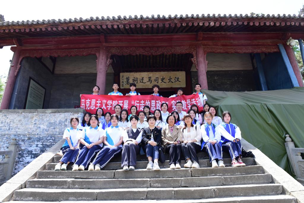 本次实践教学活动以“在行走中感受中华优秀传统文化的精神内涵”为主题,先后参观了司马迁祠、韩城市博物馆等。司马迁祠坐落在韩城市南10公里芝川镇的韩奕坡悬崖上,始建于西晋永嘉4年,是为纪念我国著名史学家司马迁而修建的祠墓。在这里,师生们踏着已有千余年历史的司马古道,依着九九台阶拾级而上,东望滔滔黄河,西眺巍巍梁山,天地间浩然正气滚滚而来。在宋塑司马迁像前,在讲解员的生动解说下,大家了解到司马迁的传奇人生,感受到了其作为史官“秉笔直书”的本性,感受到他为完成《史记》,追求理想的隐忍、拼搏和坚强。在司马迁墓前,古柏环绕,历时千年,深刻也感受到了司马迁“究天人之际,通古今之变”的史学思想。随后,师生参观了韩城市博物馆,全方位的感受历史文化的深厚遗存、儒家思想的博大精深以及古建文化的精巧绝伦。“青马”学员代表王梅谈到这次实践教学的体会时说,“一天的实践教学活动紧张而又充实,我与同学有了更加深入的交流,实践教学把理论和实践有机结合,把教科书与新时代中国这本大书有效结合在一起,对我们而言,受益匪浅。”