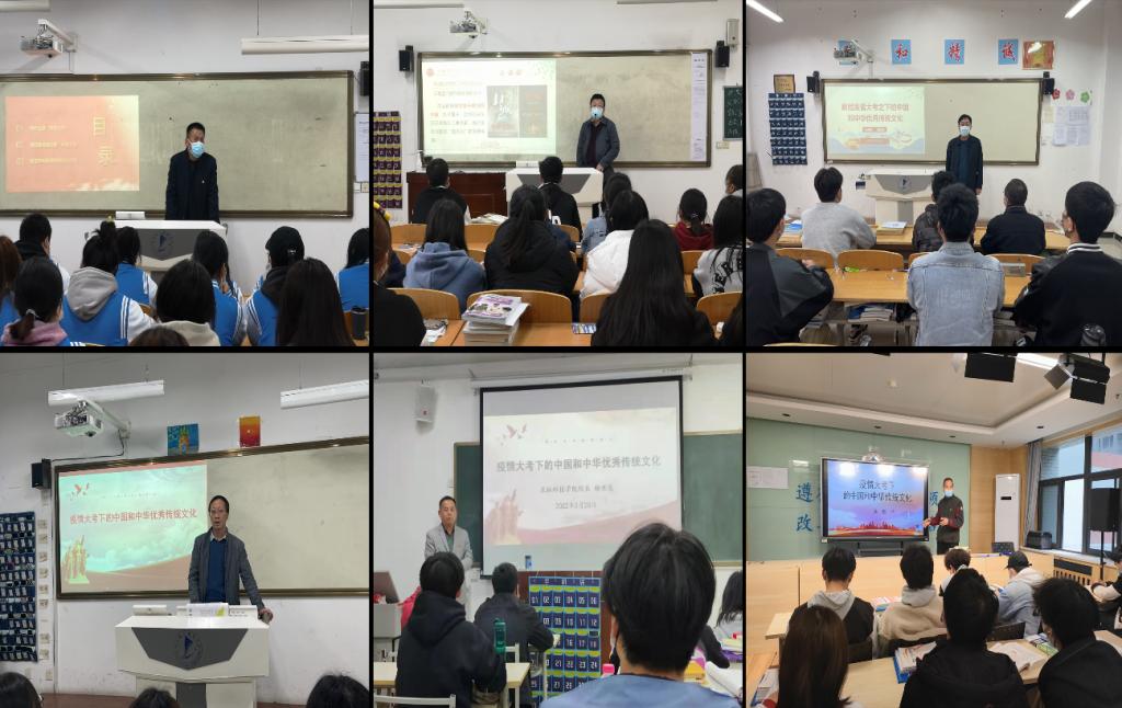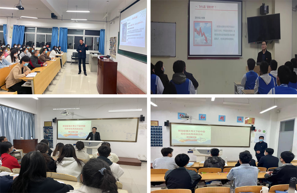 从3月16日晚到3月22日晚,学校8名领导班子成员深入7个二级学院,利用晚自习时间以主题班会的形式,围绕“疫情大考下的中国和中华优秀传统文化”这一主题与青年学生探讨交流,共上16堂思政大课。7个二级学院25名党政负责人及18名职能部门负责人,深入班级共上35堂思政大课。51名专兼职思政教师在《毛泽东思想和中国特色社会主义理论体系概论》《心理健康与职业生涯》等课程中融入疫情防控知识及思政育人元素,为全校123个教学班共上123节思政大课。440余名专业课教师结合专业特点,利用课前5分钟时间,以“四讲、三问、两增强”为内容加强课程思政教育工作,强化社会主义核心价值观教育。这堂深刻的“抗疫”思政大课全校13000余名学生参加,参与率100%,实现全员参与、全域覆盖和全方位推进。