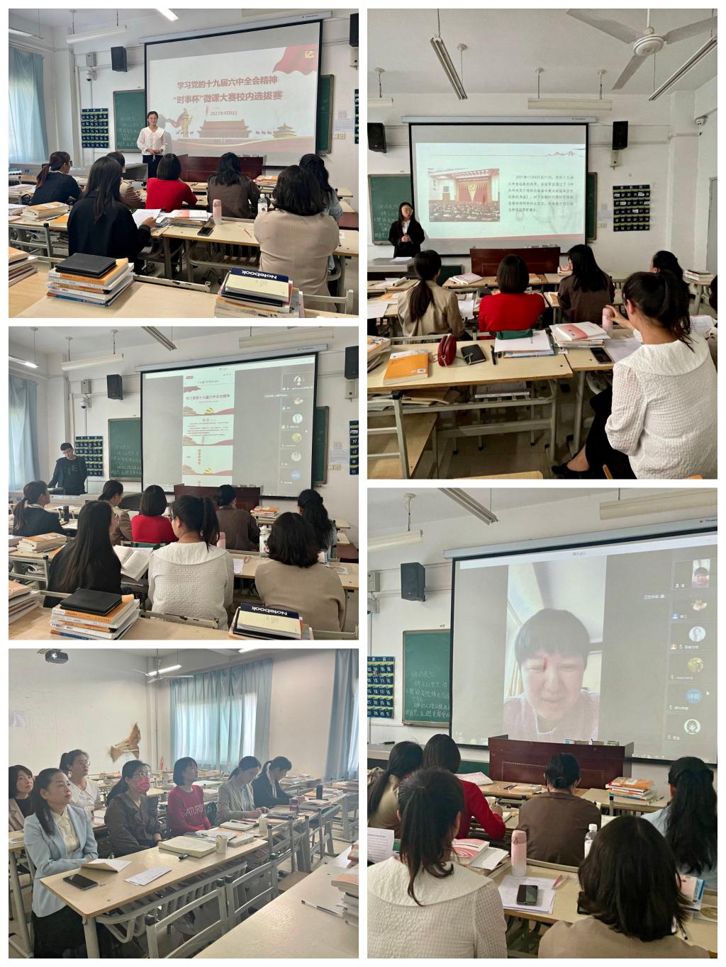 党的十九届六中全会是在党成立一百周年的重要历史时刻、在党和人民胜利实现第一个百年奋斗目标、全面建成小康社会,正在向着全面建成社会主义现代化强国的第二个百年奋斗目标迈进的重大历史关头召开的重要会议。为把党的十九届六中全会精神的学习继续推向深入,增强党史学习教育的感性认识,陕西省职业技术教育学会思想政治理论课教学指导委员会举办学习党的十九届六中全会精神微课大赛暨党史学习教育现场教学活动。为遴选出优秀的参赛选手,4月6日下午,买球官网外围买球的app十大平台在公北320教室举办了校内选拔赛,组织人事处师资科副科长齐晓娟、教务处教学质量科干事黄睿、马院领导班子及全体教师参加了选拔赛。选拔赛由副院长王晓莉主持。