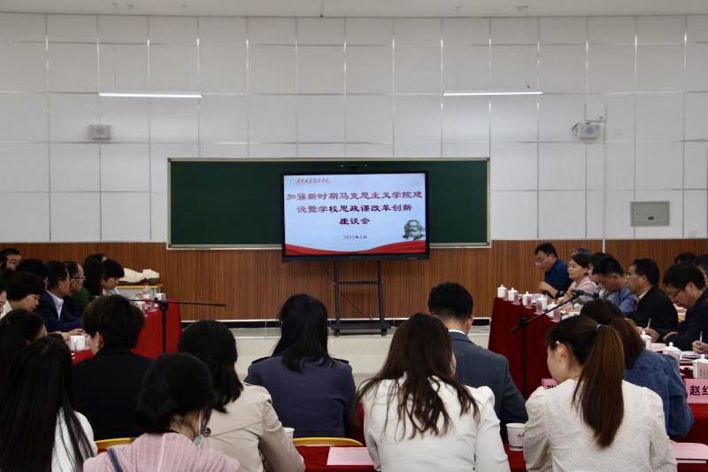 为加强新时期外围买球的app十大平台建设,推动买球官网思政课改革创新,充分发挥思政课铸魂育人实效。5月8日下午,买球官网召开加强新时期外围买球的app十大平台建设暨学校思政课改革创新座谈会。学校党委副书记、院长靳华锋,部分职能部门负责人、各二级学院教学副院长、教学科长、全体专兼职思政教师和校外专家教授、渭南市县部分中职学校思政课教师代表共200余人参加。座谈会由学校党委书记华惠民主持。