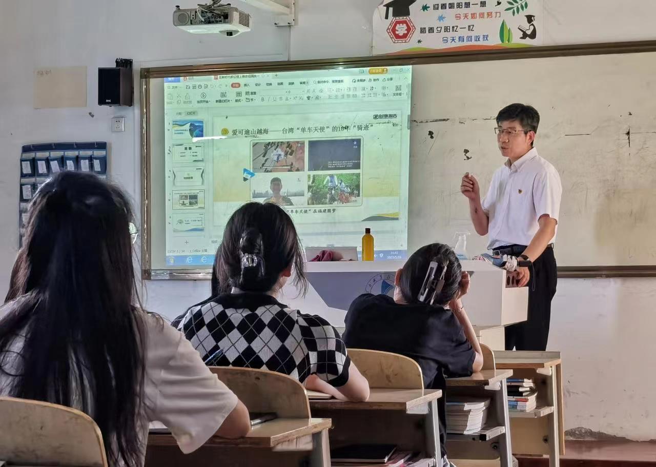 靳华锋围绕“在新时代新征程上推进祖国统一”这一主题展开讲授。他以问题导入本节课,在讲授中,分别从台湾问题的历史由来、台湾对于中国的战略地位、我们党和国家在不同时期的对台政策、推进祖国统一是实现中华民族伟大复兴的必由之路等四个方面进行详细讲授。课堂气氛活跃、师生互动良好,通过生动活泼、资料详实的讲述,使学生充分理解了推进祖国统一的重要性,极大地增强了学生的爱国情怀和民族自豪感。本堂授课在靳华锋朗读的余光中先生的《乡愁》中结束,引发青年学生的强烈共鸣和阵阵掌声。