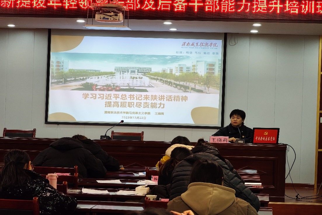 2月13日、14日,买球官网外围买球的app十大平台院长王晓莉分别为澄城县新提拔年轻领导干部及后备干部能力提升培训班学员和渭南市经开区管委会干部职工学习习近平总书记来陕考察重要讲话重要指示精神进行专题辅导。