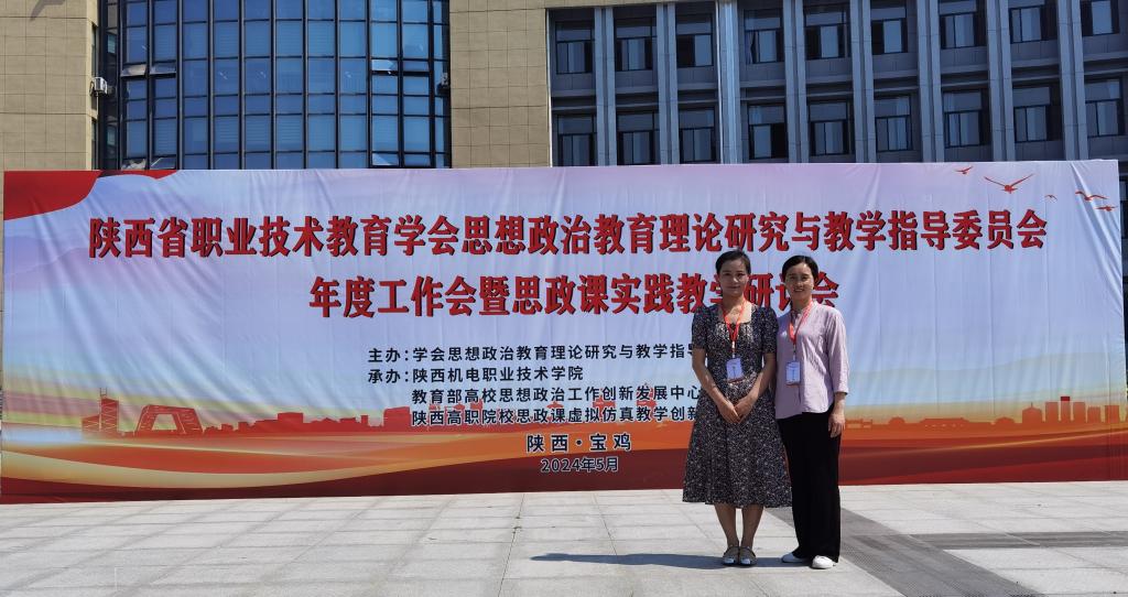 5月23-24日,陕西省职业技术教育学会思想政治教育理论研究与教学指导委员会年度工作会暨思政课实践教学研讨会在陕西机电职业技术学院召开,买球官网外围买球的app十大平台德法教研室主任余金枝和青年骨干教师石欣欣参加。会议由陕西机电职业技术学院党委副书记、院长向纪明主持。