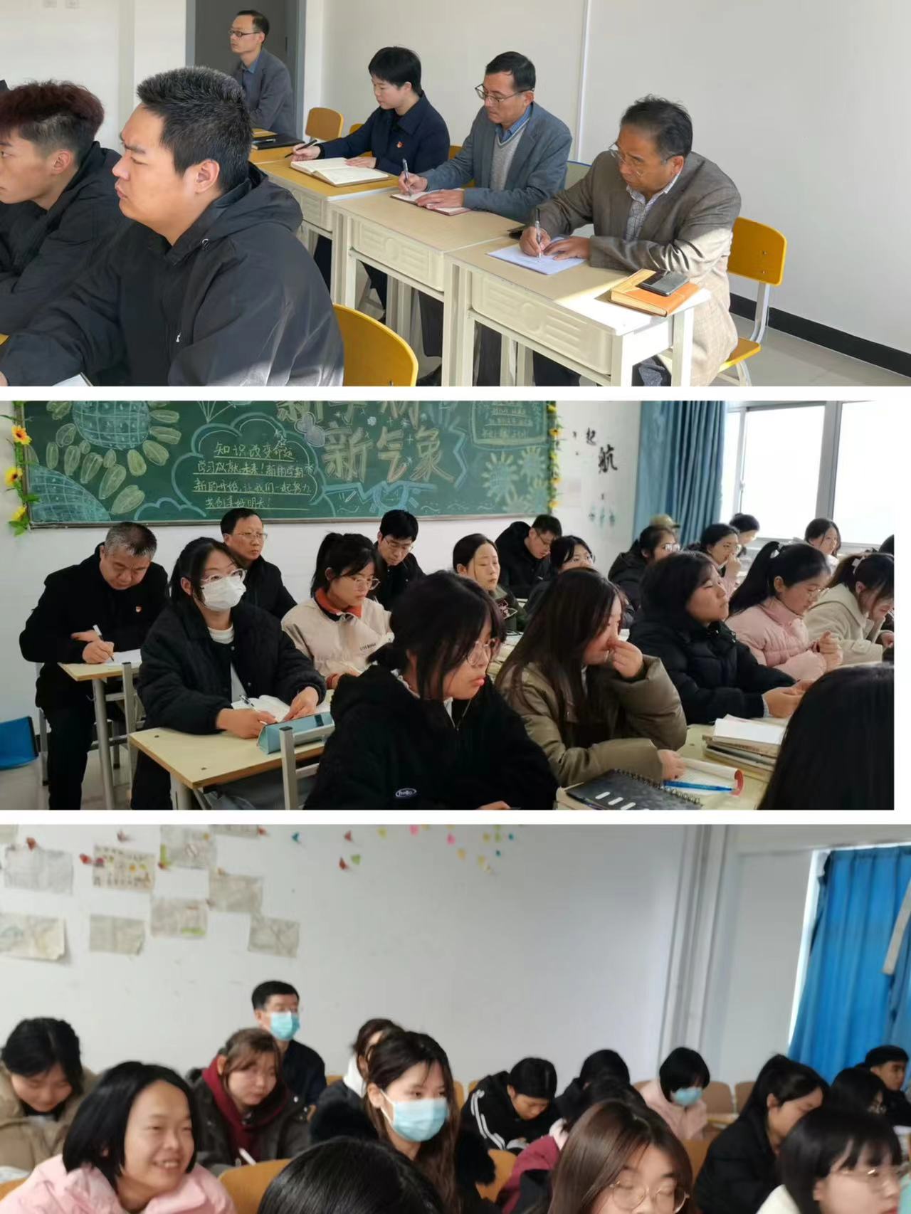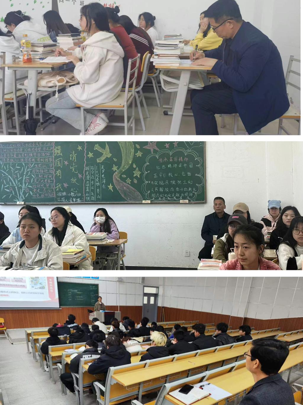 院领导先后随堂听取了《毛泽东思想与中国特色社会主义理论体系概论》、《习近平新时代中国特色社会主义思想概论》课程,听课过程中,院领导认真记录授课教师的教学内容、教学方法和教学效果,细心观察青年学生的精神面貌和学习状态。课后,与被听课教师交换意见、进行沟通,询问课程教学和学生学习的相关情况,并对改进课堂教学、提高教学质量提出了希望和要求。