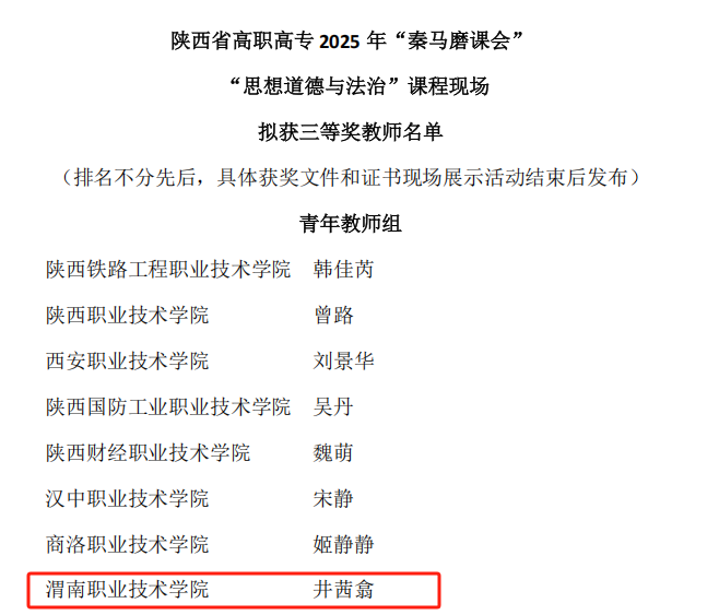 买球官网将继续依托省级“秦马磨课会”教学展示平台,加大在教学理念、教学方法、教学手段等方面的创新力度,不断增强思政课练兵实效,持续深化思政课守正创新,加强教师队伍建设建设,为培养德智体美劳全面发展的高素质技术技能人才筑牢思想根基。(撰稿:外围买球的app十大平台 柴华 审核:王晓莉)